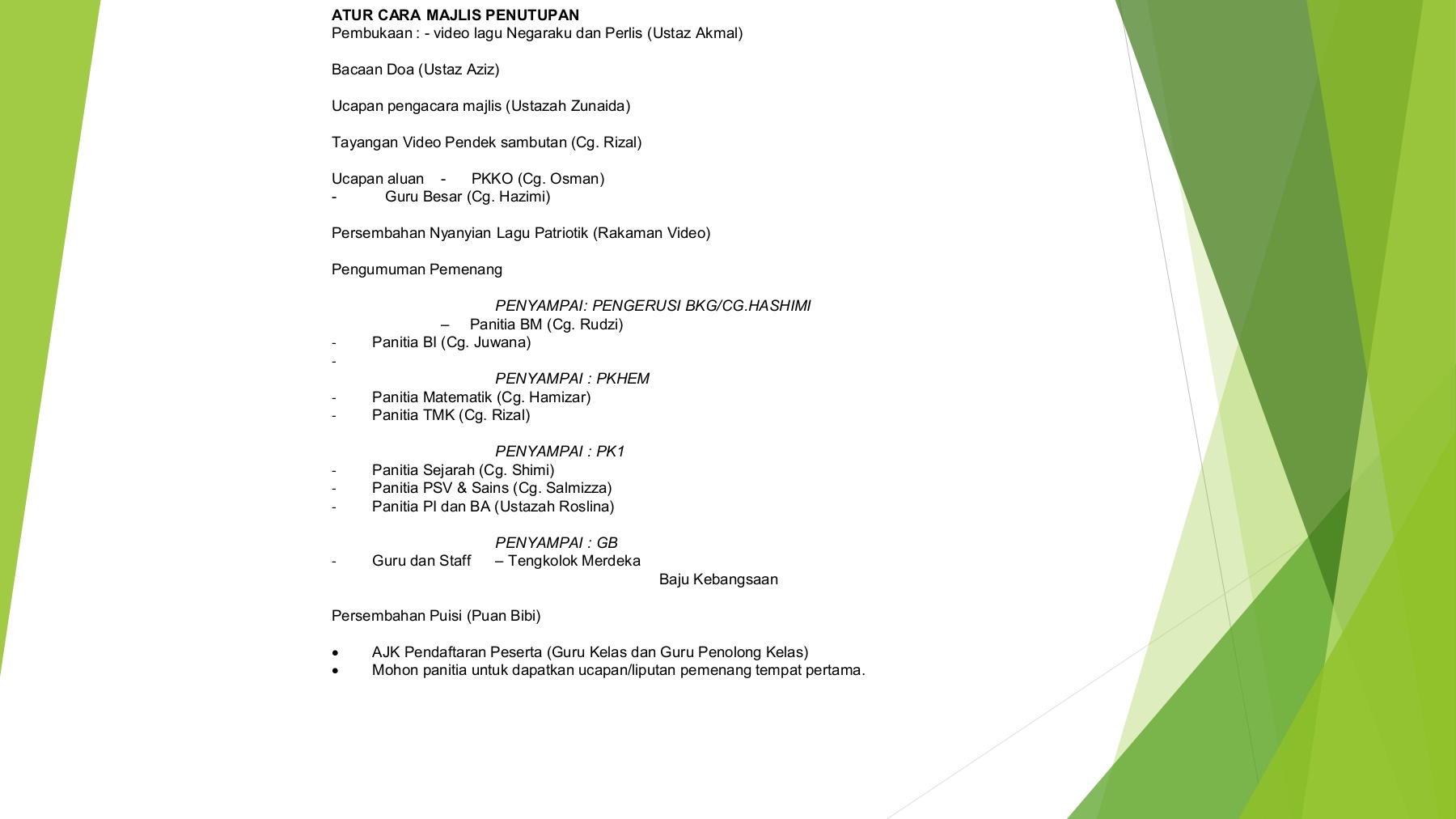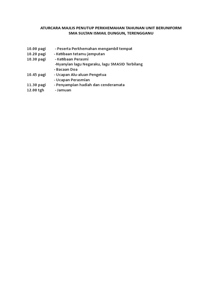 Semoga mendapat kerjasama daripada semua yang hadir. ATURCARA MAJLIS PENUTUP. Close suggestions Search Search.